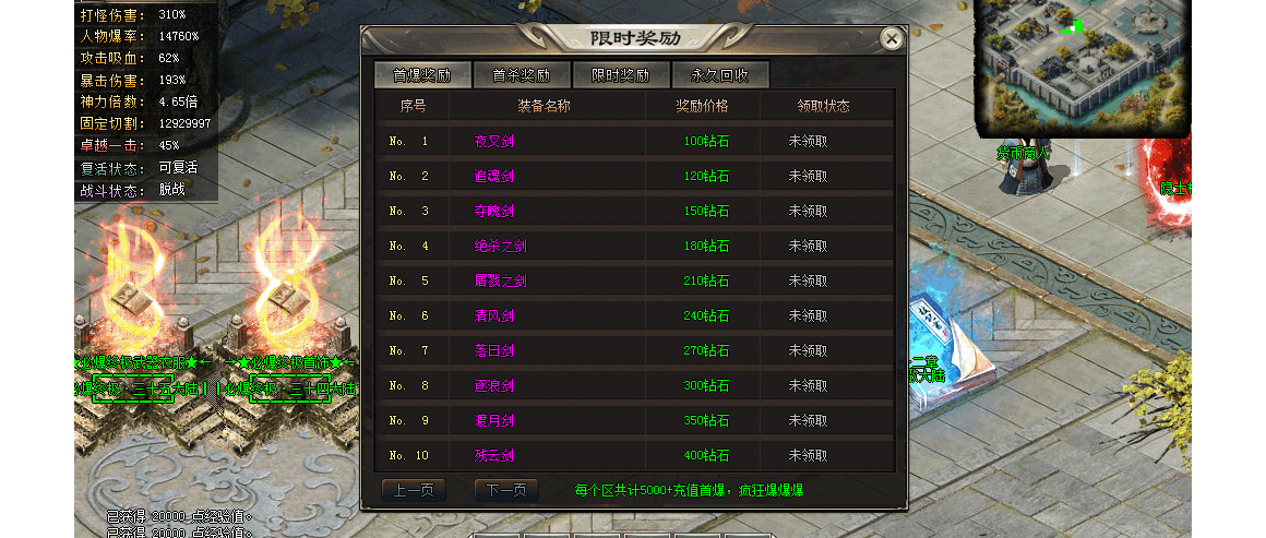 五倍充值(100=500)全新玩法-全图刷怪-秒刷无需等待!后期经典打终极!